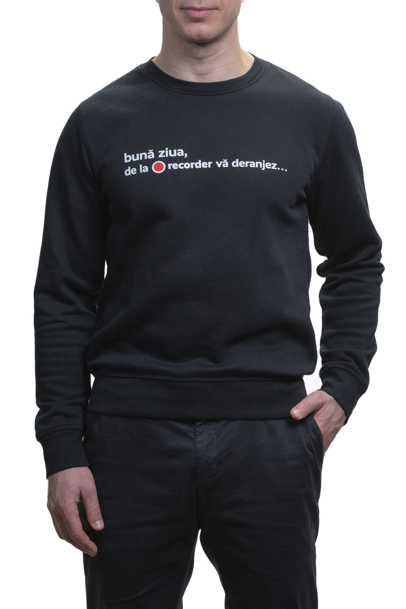 Modelul masculin din imagini are 175cm și poartă mărimea M.