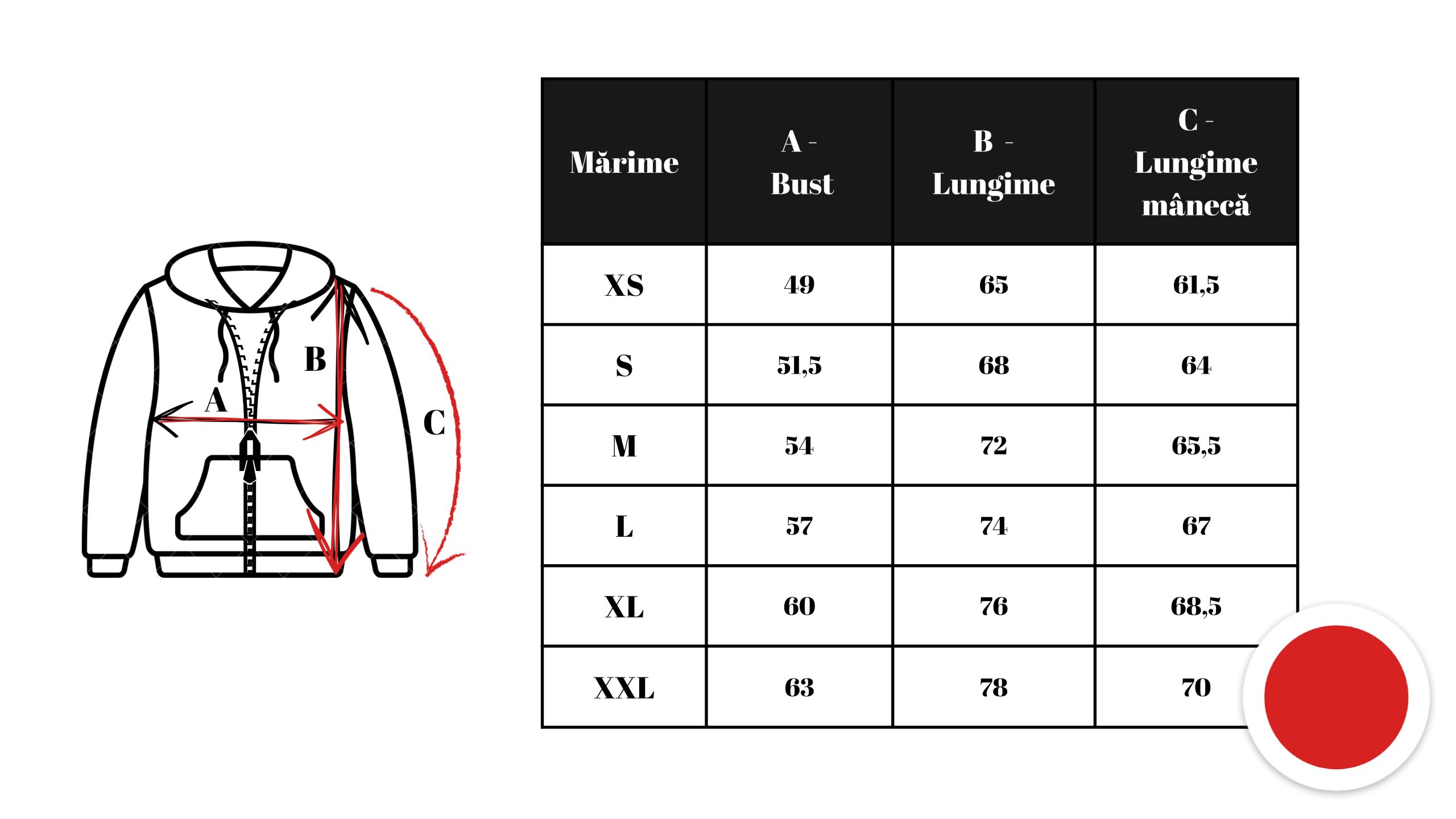 Modelul feminin din imagini are 168cm și poartă mărimea XS.